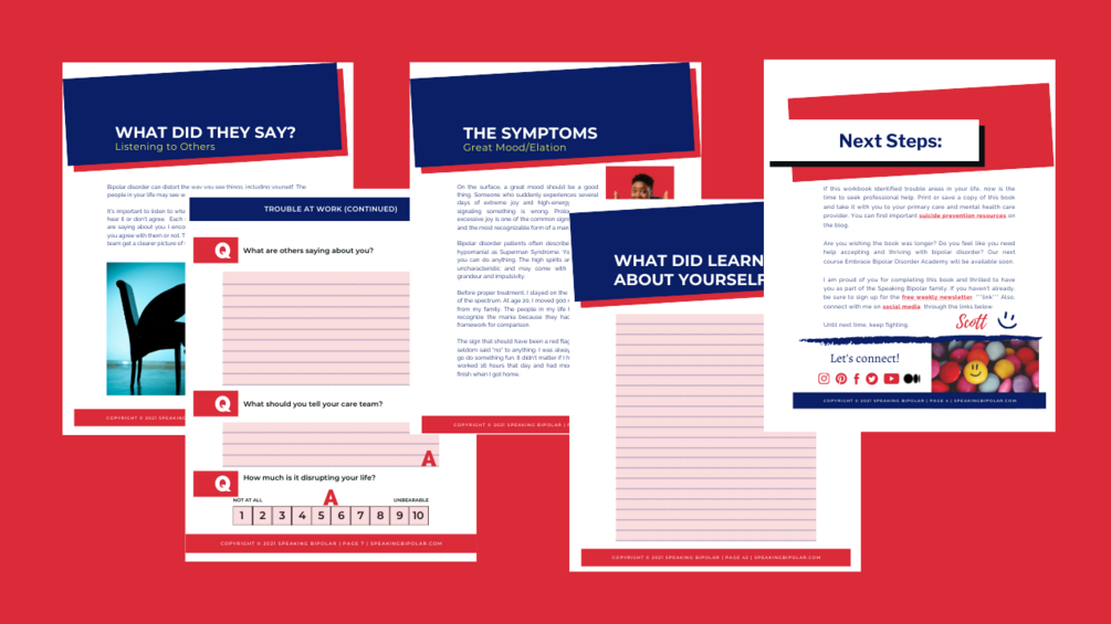 This 46-page workbook will help you explore common bipolar symptoms and see how they show up in your life.
